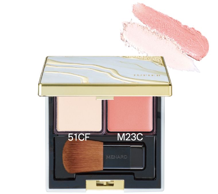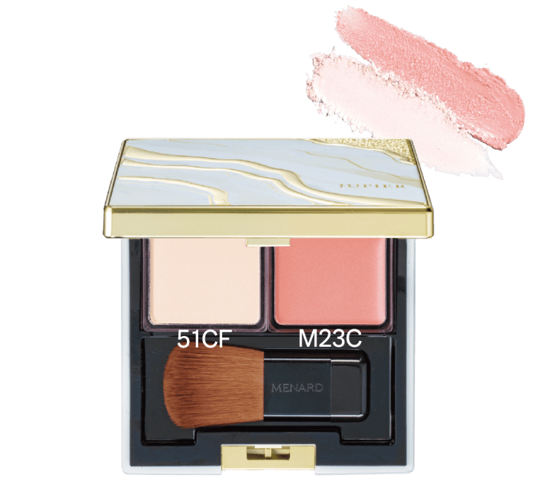 1. チークカラーM23Cを指でほほ骨をとらえながら、ほほ骨にそって入れます。