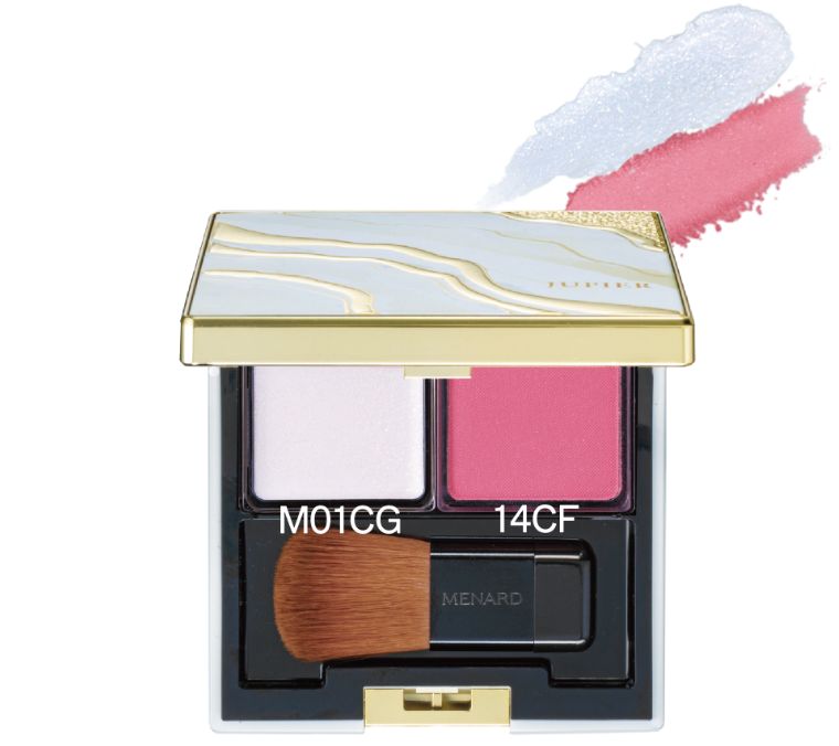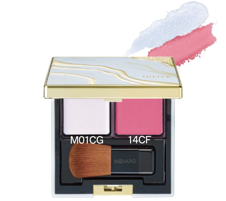 1. チークカラー14CFをブラシでほほ骨にそって入れます。