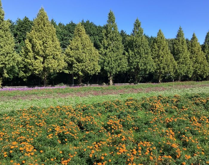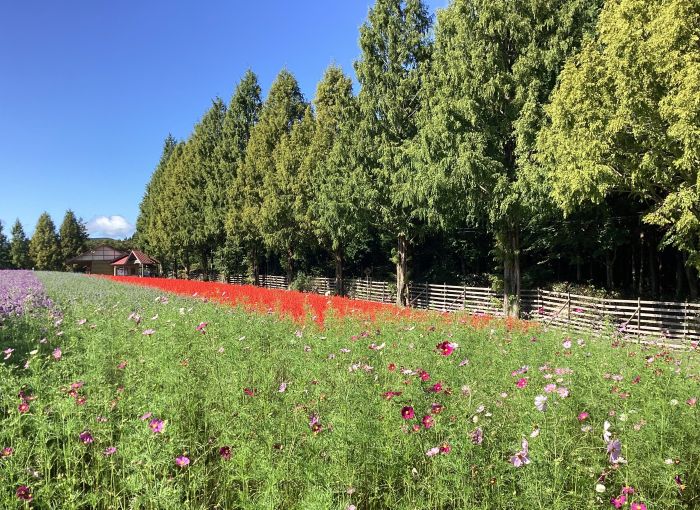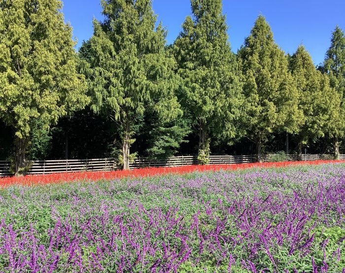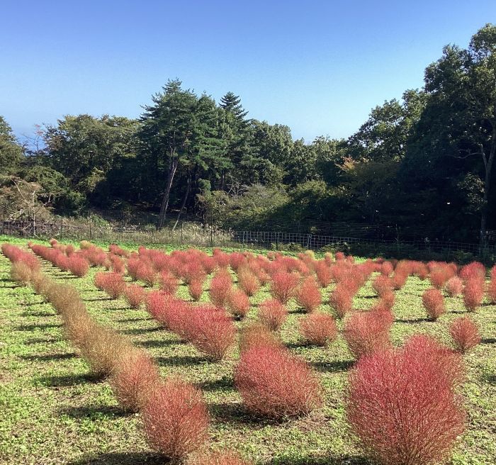 秋晴れの空の下、心地良い陽ざしに包まれたハーブガーデンです。